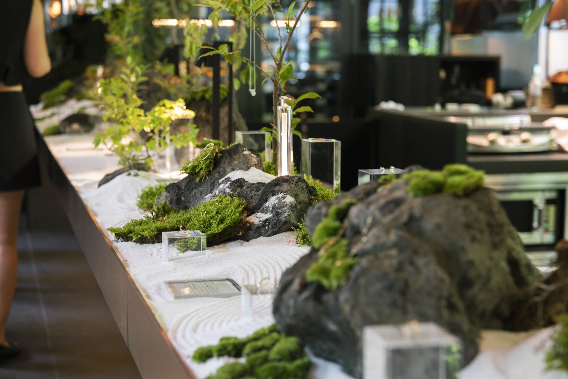 同社が運営するサイトで取り扱う商品群は、盆栽と一緒に展示され、その世界観の広がりを演出。メディア関係者やモデル、インフルエンサー、ジュエリー業界の方々が来場し、ザ・フューチャー・ロックスの革命的なビジネスモデルと、その優れたクリエイティビティを堪能しました。