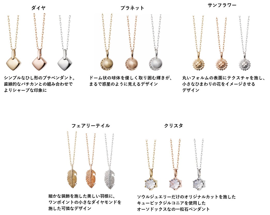 Soul Jewelryから「K10(金42%)」を使用しお求めやすい価格のゴールド素材のラインナップ5種に、大切な人との絆を“&”の文字に込めてデザインされた「&シリーズ」を販売します。