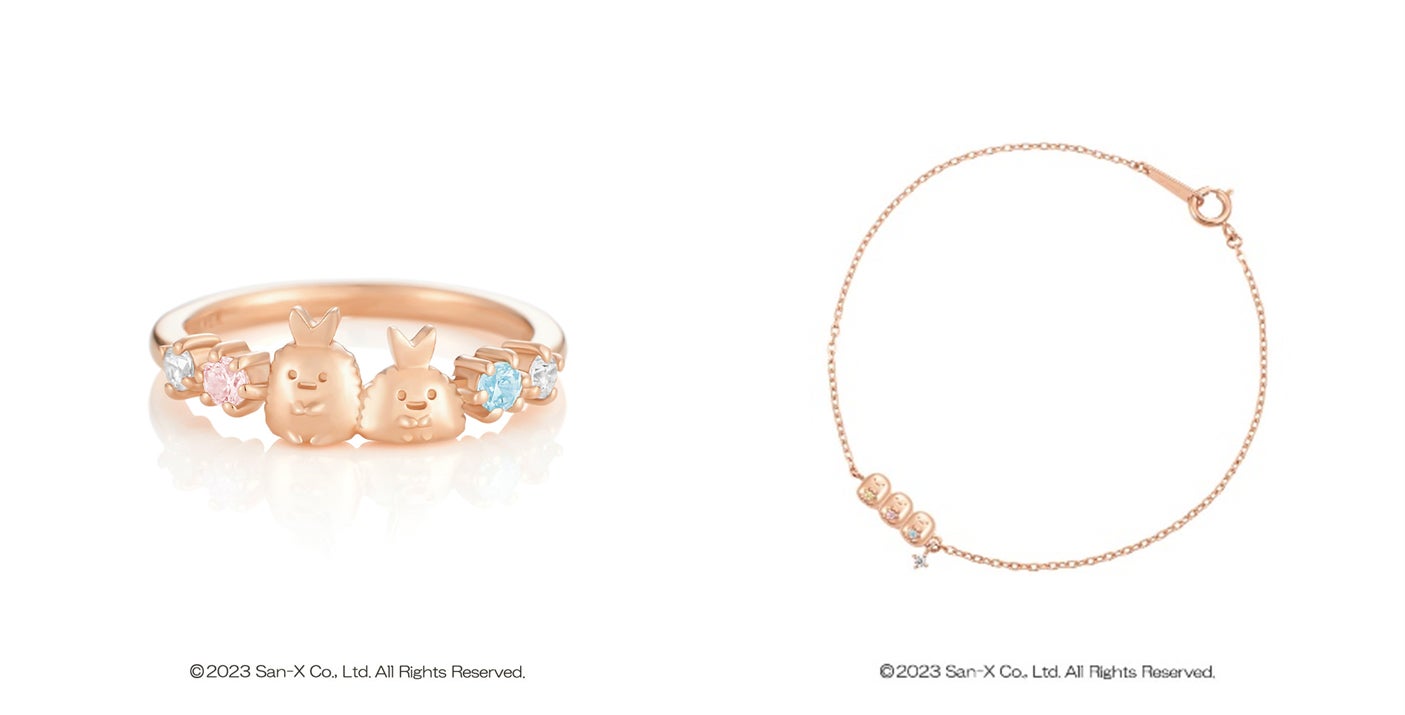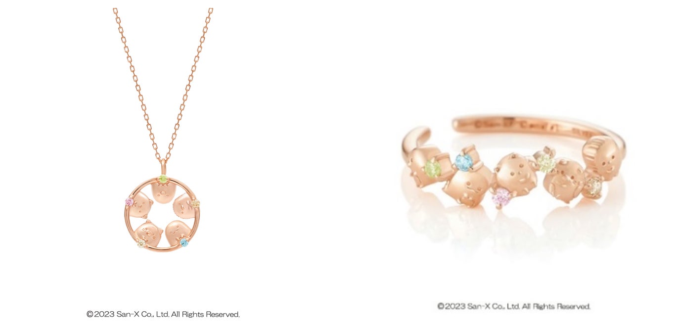 今回登場するのは、人気のすみっコたちがそれぞれのイメージカラーのストーンを抱きかかえたように円になって覗くネックレスや、すみっコ×みにっコの組み合わせに癒されるピアス、「たぴおか」たちが仲良く寄り添うブレスレットなど、見るたびについ微笑んでしまいそうな愛おしいジュエリーたち。ネックレスの裏側にも顔が隠されているなど、細部にまでファンの心をくすぐるアイテムが揃います。