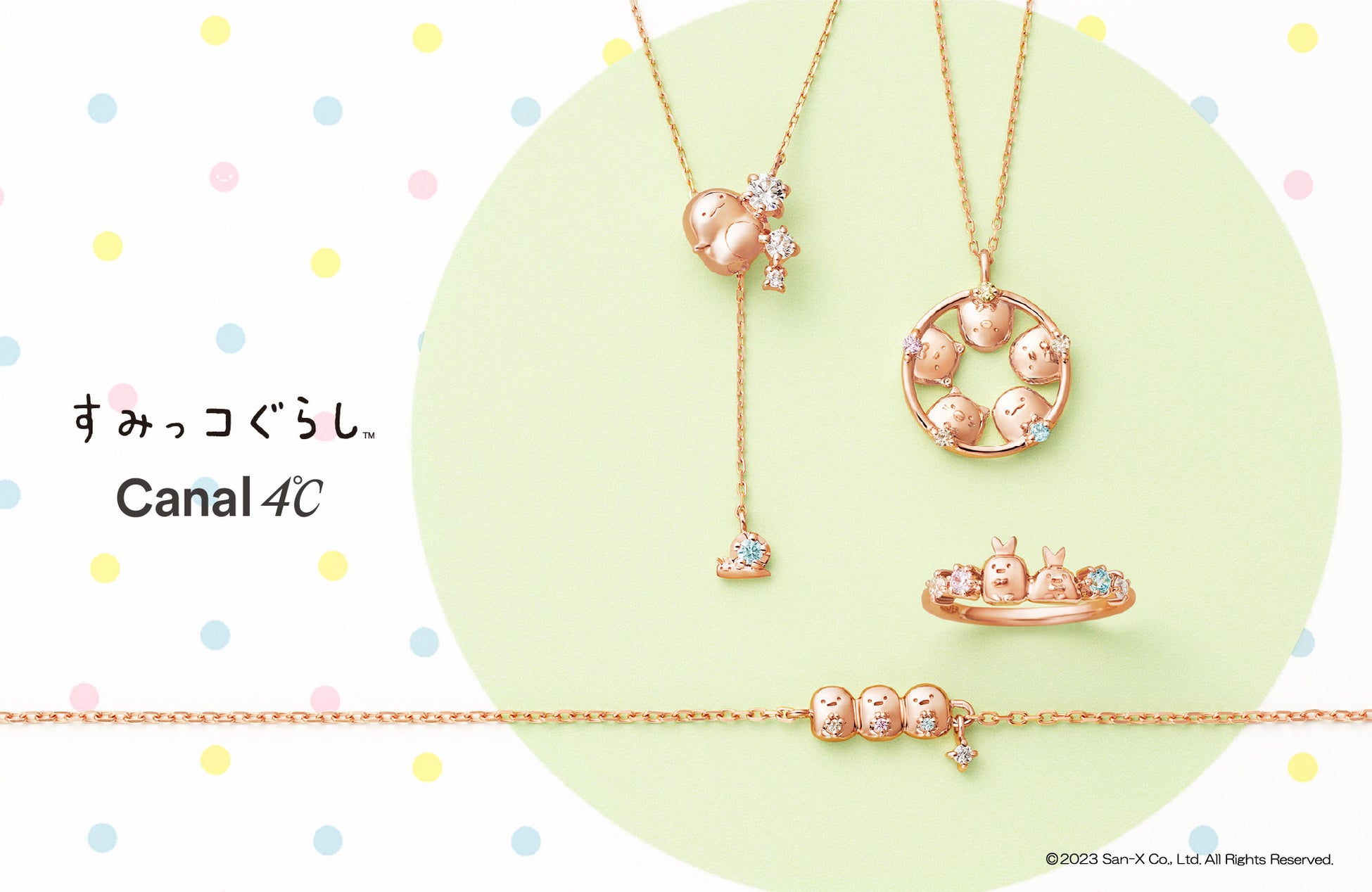 ジュエリーブランド「Canal 4℃」は、ブランド初となる、サンエックスが展開する人気キャラクターシリーズ「すみっコぐらし」とコラボレーションしたジュエリーを受注販売限定で発売いたします。すみっコたちが顔を覗かせる大人可愛いジュエリーは、2023年11月20日(月)より、公式オンラインショップおよびCanal 4℃一部店舗にて発売いたします。