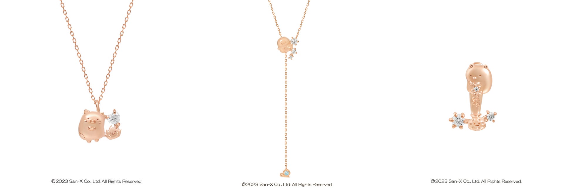 すみっコ×みにっコの優しさを表現したたまらない愛らしさのネックレスやジャケットピアスも登場。