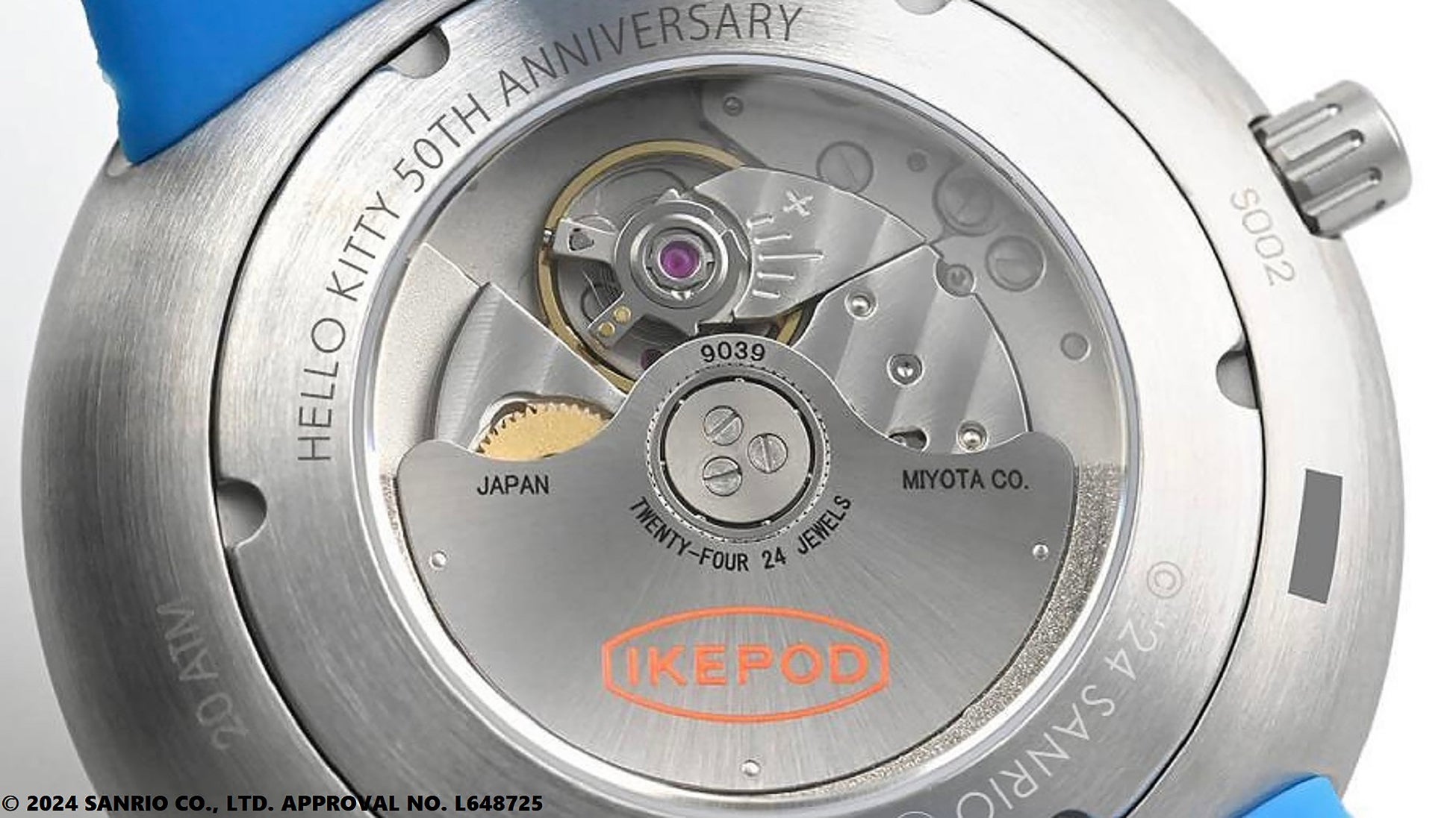 裏蓋には「HELLO KITTY 50TH ANNIVERSARY」の刻印が入り、この時計がスペシャルピースであることを表します。