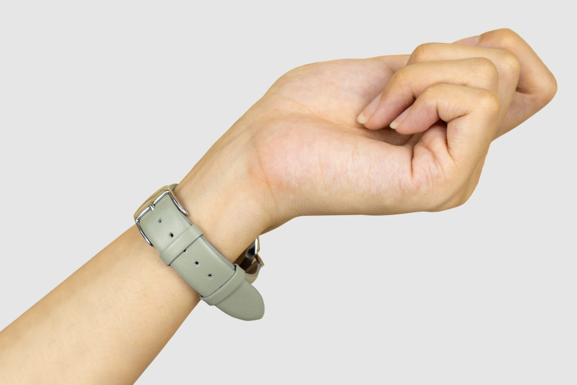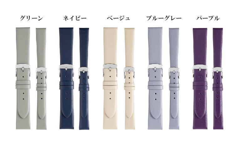 バンド素材には、きめ細かくしなやかな国産牛革スムースレザーを使用しています。また、ノンステッチの本体とマットなコバ(側面部分)により、落ち着いた雰囲気を演出。シンプルな文字盤の時計と相性が良く、涼しさを感じさせるバンドです。