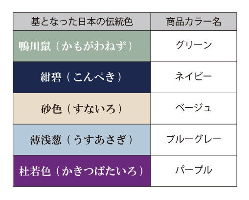 優美な風情・心惹かれる雰囲気などを意味する”趣(おもむき)”をコンセプトに、日本の伝統色から着想を得た5色のカラーを展開。