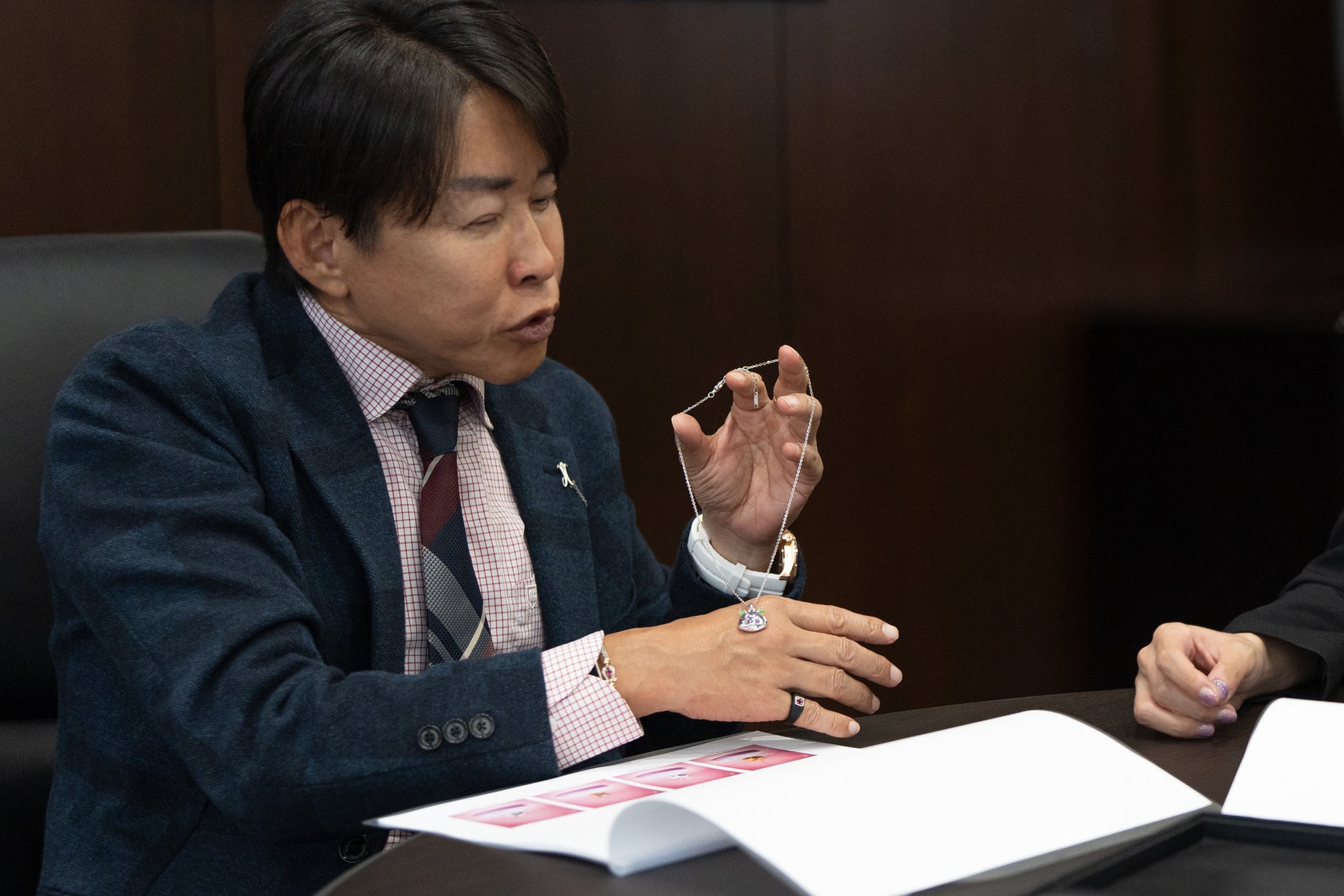 misono「第1弾のチャリティアクセサリーの売上の一部は、自分の地元でもありGEMCEREYさんの本社がある京都市の動物愛護センターへ寄付します。今回はネックレスにしてみたのですが、ピンバッジタイプの制作も進めています。このチャリティアクセサリーがSDGsのバッジや赤い羽根みたいな存在になり、保護活動をしている人が身につけて沢山の人に広がり、一致団結して1つになれるといいなと思っています。中野社長をはじめ、ジェムケリーグループホールディングスの商品開発部の皆さんに素敵なアドバイスをもらえたので素晴らしい商品が完成しました。もし良かったら是非、皆でつけましょう!」