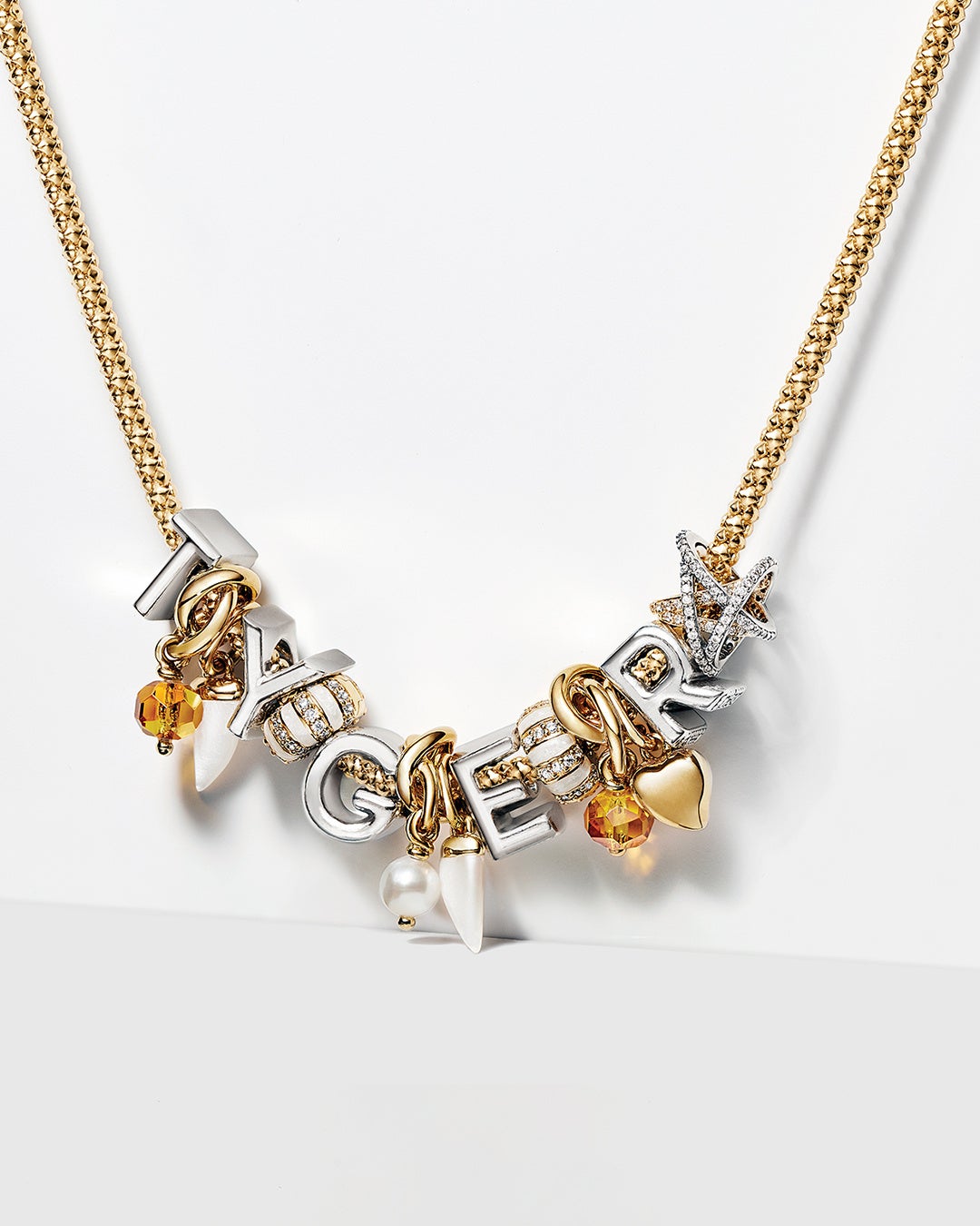 タイラさんは「自分だけのオリジナルな組み合わせが作れるパンドラのジュエリーは、スタイリングするのが本当に楽しいです。母がいつもハンドメイドのジュエリーを作っていたこともあって、すごく懐かしい気持ちにさせてくれます。誕生石のチャームを見ると、子どもの頃、家にいつも転がっていたビーズを思い出します。母が私と妹に構う時間がない時、いつも私たちにビーズの入った大きな箱を渡して、私たち姉妹は一日中お揃いのブレスレットを作っていました。そして、今回、私と“タイガーズ”(タイラのファン)とでお揃いのブレスレットを楽しめるようになりました」とコメント。