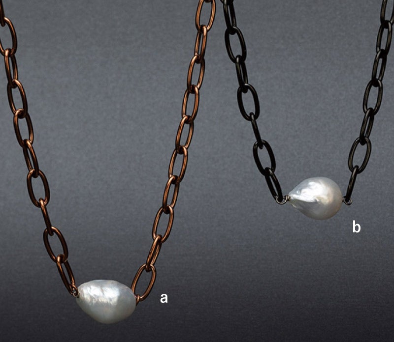 <アンディ ミュラー> a.白蝶パールネックレス <1点限り> 88,000円 (ステンレススチール)[茶PVD] b.白蝶パールネックレス <1点限り> 82,500円 (ステンレススチール)[黒PVD]