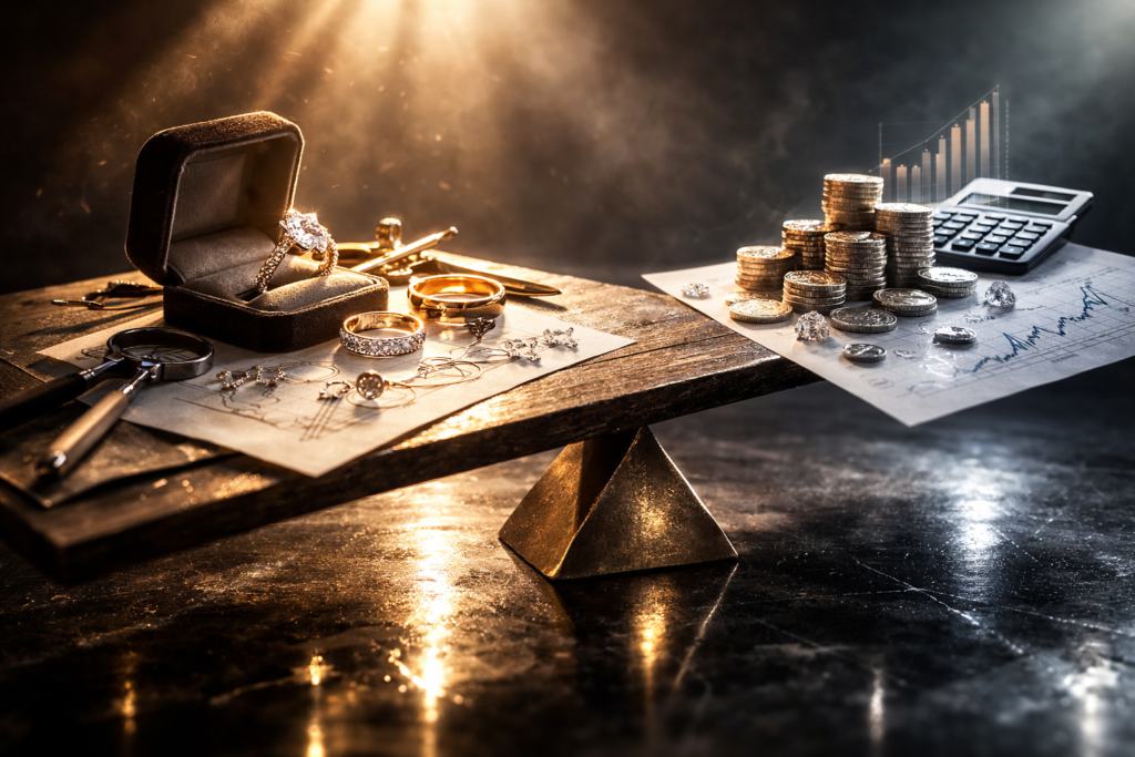 宝飾品を「資産」として訴求するケースがある。確かに地金や一部の希少石は市場価格を持つ。しかし一般的なジュエリー製品が、購入価格通りに流動化できるケースは極めて限定的だ。