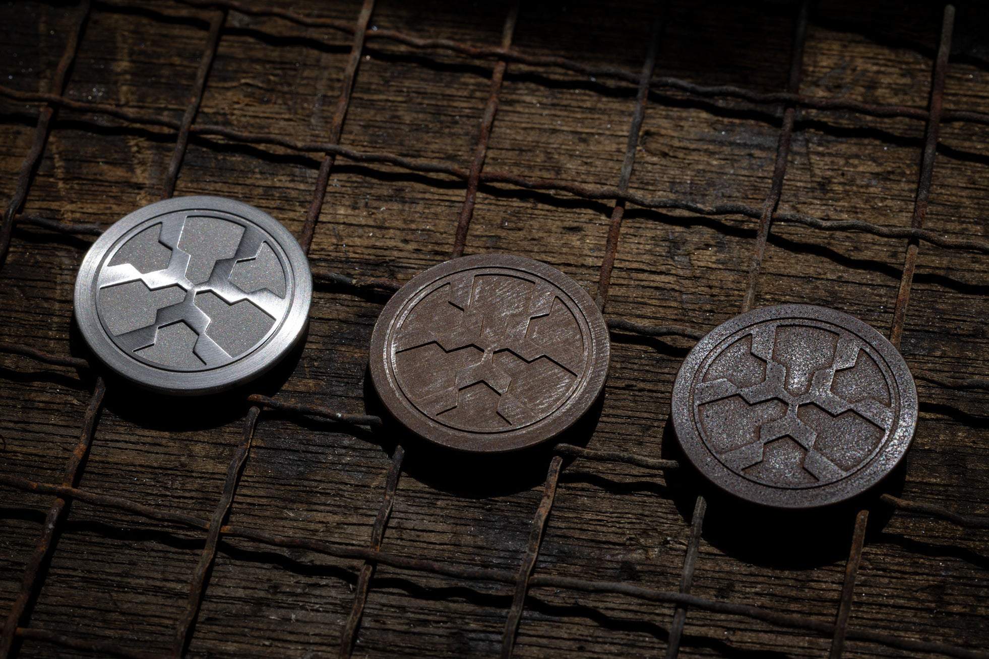 日本刀の持ち手のことを、茎(なかご)と言います。通常は柄(つか)に隠れる部分ですが、刀を鑑賞し、お手入れする時は茎を持ちます。このときに手の脂などが茎に付着し、年月を経て深みのある黒錆に覆われていきます。黒錆には赤錆の発生を防ぐ目的がありますが、むしろ黒錆を眺めれば刀匠の腕前がわかると言われるほど、日本刀の価値を判断する重要な部分です。鑑賞し、お手入れを重ねるにつれて錆の色合いが変化していく様を楽しむ。まさに黒錆は、日本の愛でる文化の象徴と言えます。最も良い色とされるのは紫がかった深い黒の羊羹色です。提げ時計の裏蓋と提げ環の部分は、玉鋼を叩き上げた和鉄に刀匠が心血を注いで黒錆を施しています。錆の色合いが深まるのは50~100年後です。日々、提げ時計を触り続けて錆を育ててください。